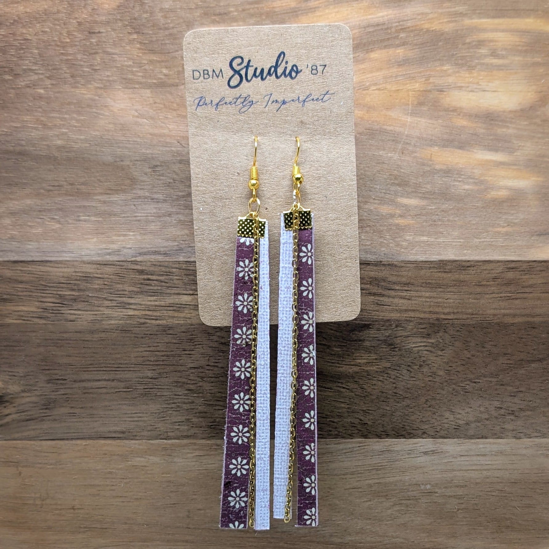 Side by side, delicate maroon and off-white daisy patterns exude a charming boho vibe, and a subtle textured white and purple design. The harmonized color schemes ensure versatility, making these earrings suitable for both casual and special occasions. Whether you’re dressing up or down, these earrings will make a statement with their artistic flair.