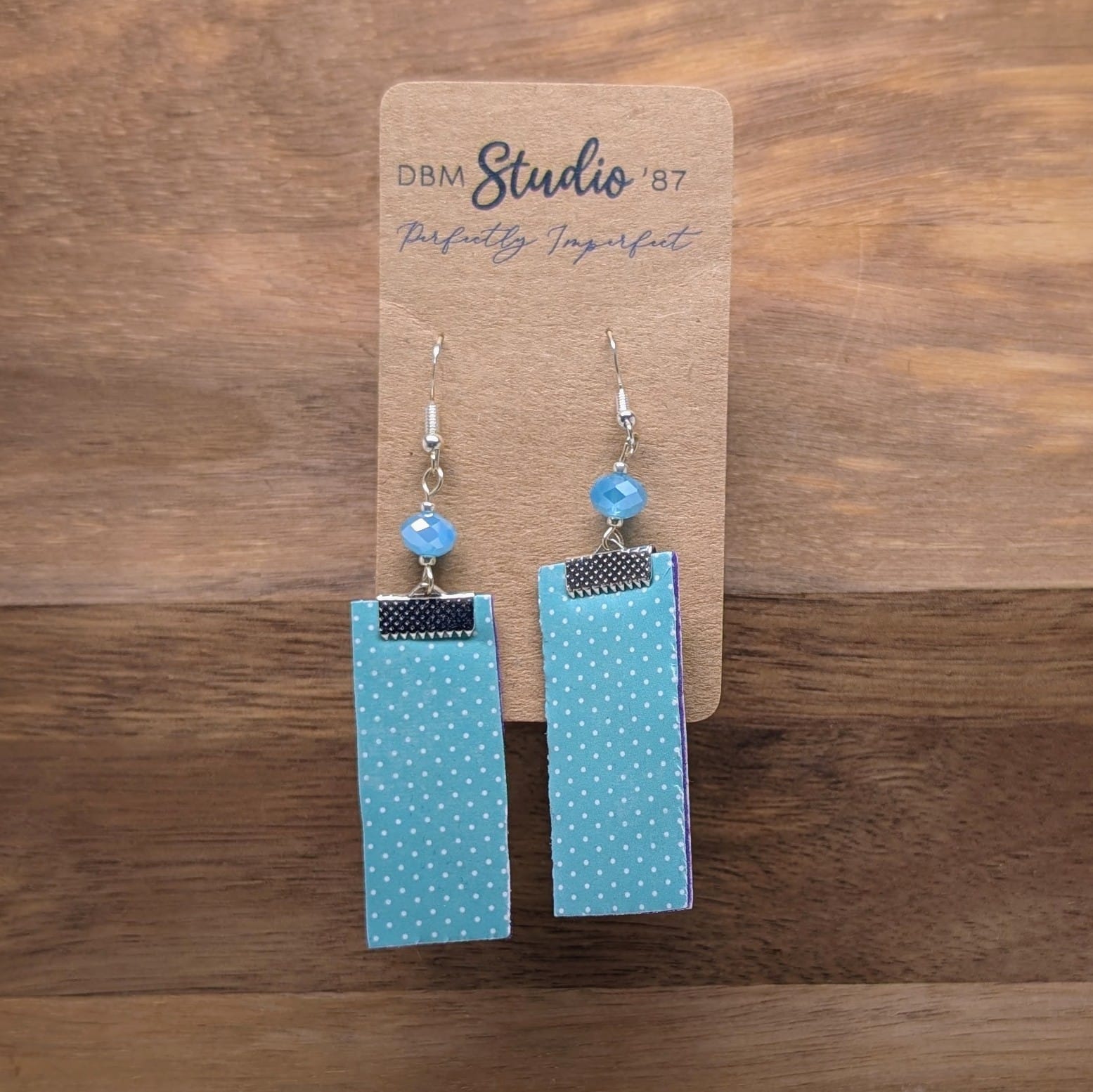 These medium-length scrapbook earrings are a charming addition to your jewelry collection. Crafted with a unique rectangular design, they feature a purple felt core that adds warmth and sophistication to their overall look. Ideal for casual and semi-formal settings, these earrings are as unique as your personality.