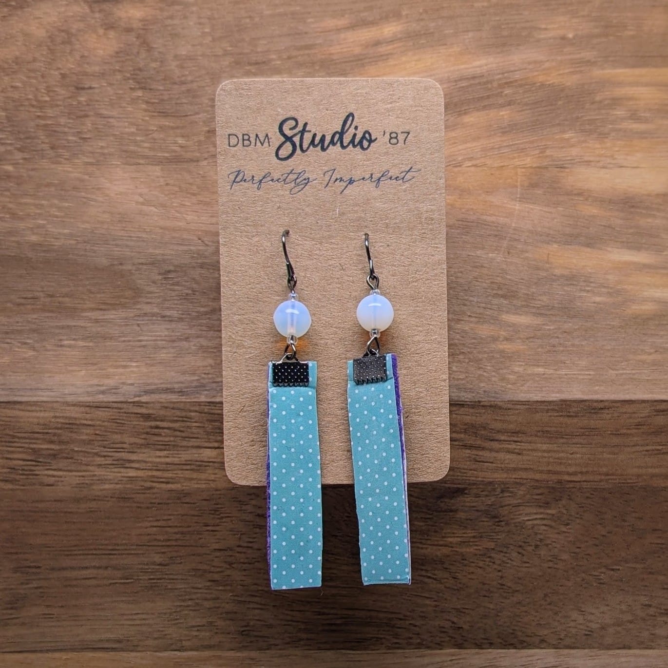 Adorn your ears with these medium-length scrapbook earrings, a perfect blend of style and creativity. Designed with a distinctive rectangular shape, these earrings feature a delightful combination of pastel colors and intricate patterns, making them an ideal accessory for any occasion.
