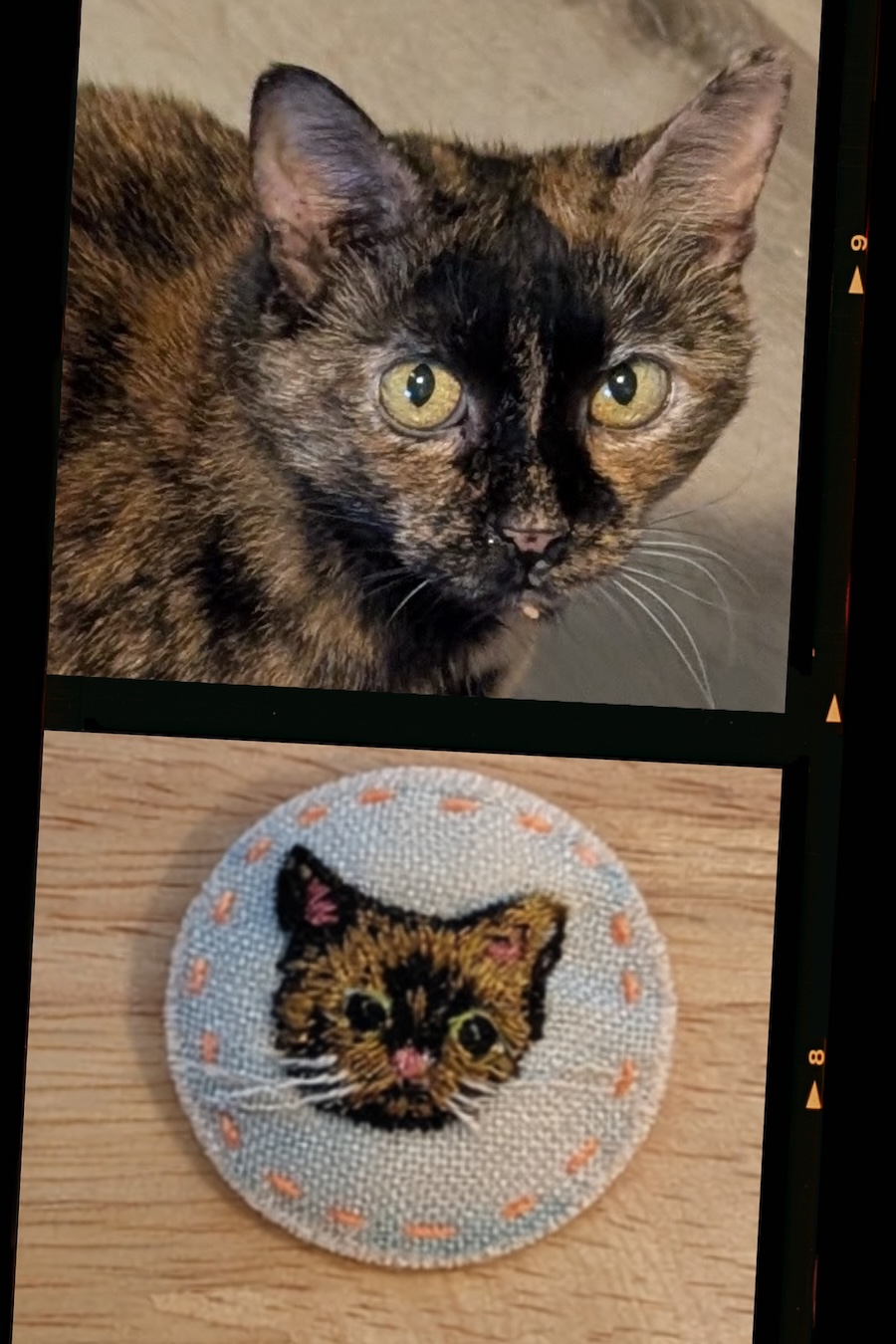 These custom pet accessories are hand‑embroidered, artistically interpreted keepsakes. Available as pins, necklaces, magnets, earrings or tie bars. Crafted with thread, a felt core, fray‑sealed edges, and a preview image before shipping to ensure your pet is beautifully captured. (At least Perfectly Imperfectly captured.)