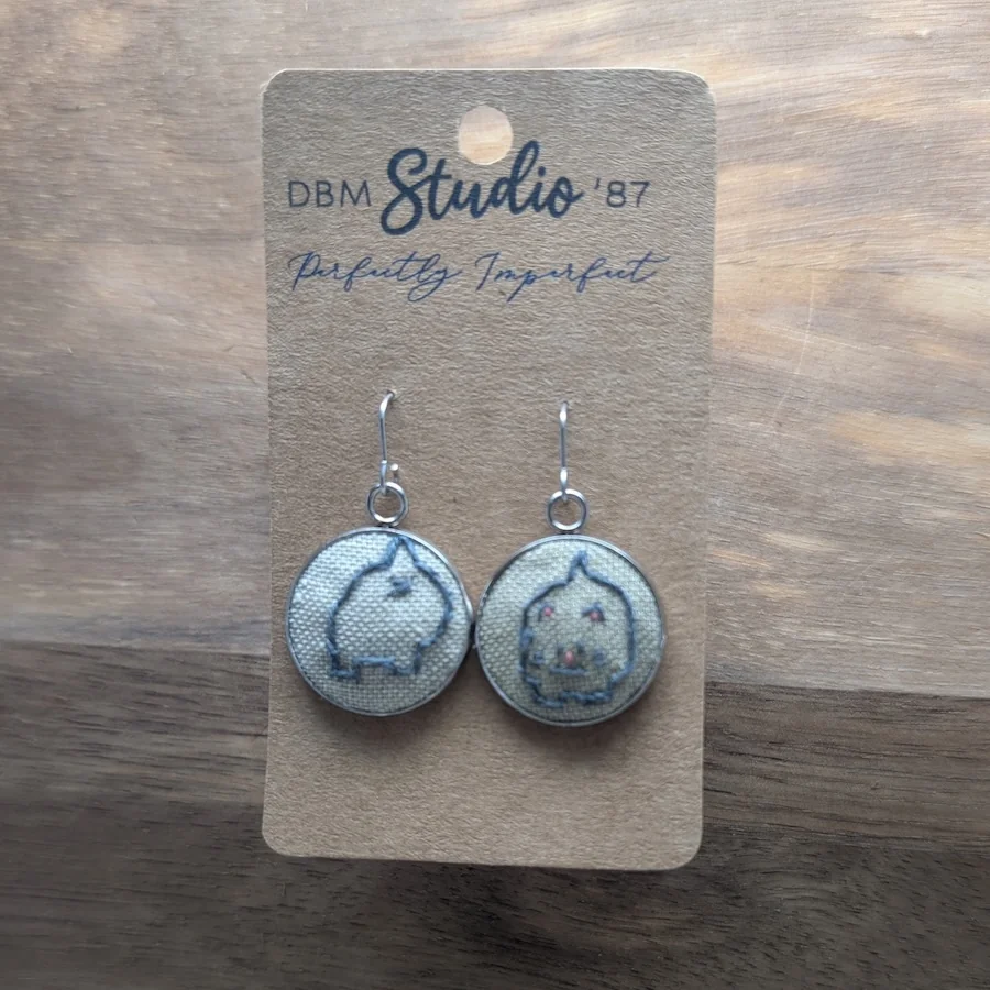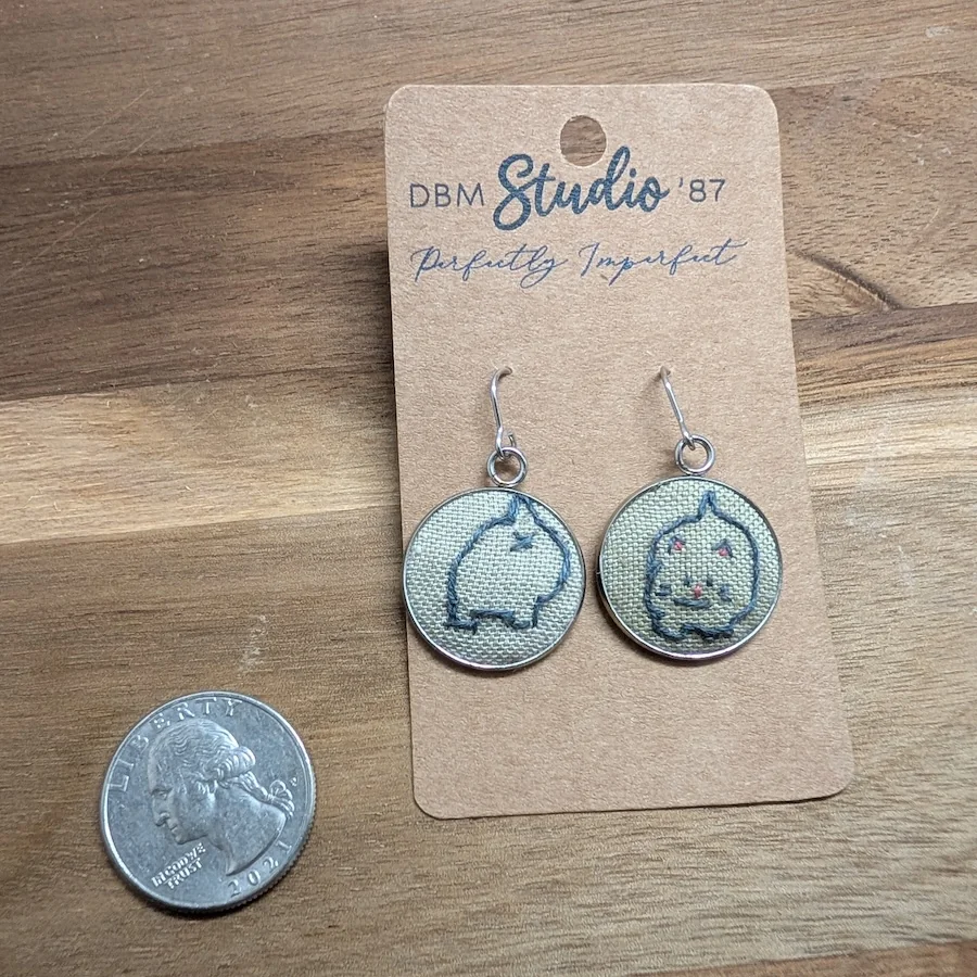 This piece is a tiny embroidered tribute to Jeffrey... butt and all. Each pendant is hand‑stitched, framed, and finished by me in my Perfectly Imperfect style. 20 mm diameter. Lightweight and finished with Fray Check*. Made with love for fellow Jeffrey fans.
